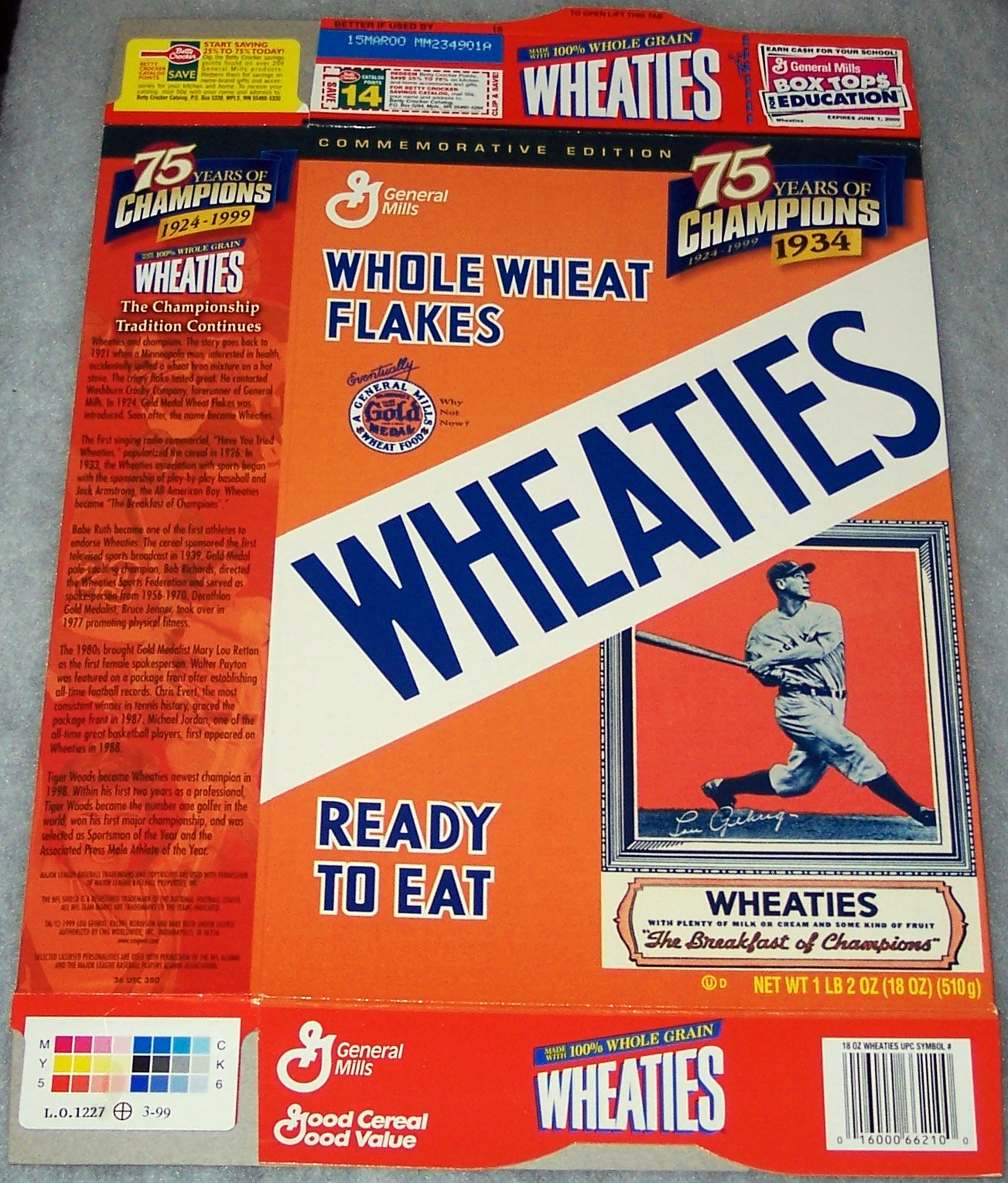 1999 Lou Gehrig 75 Years of Champions WHEATIES Box