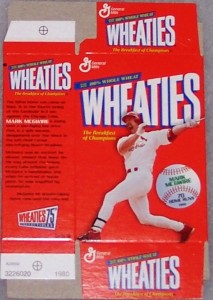 1999 Mark McGwire (mini MISSING gold signature) WHEATIES Box