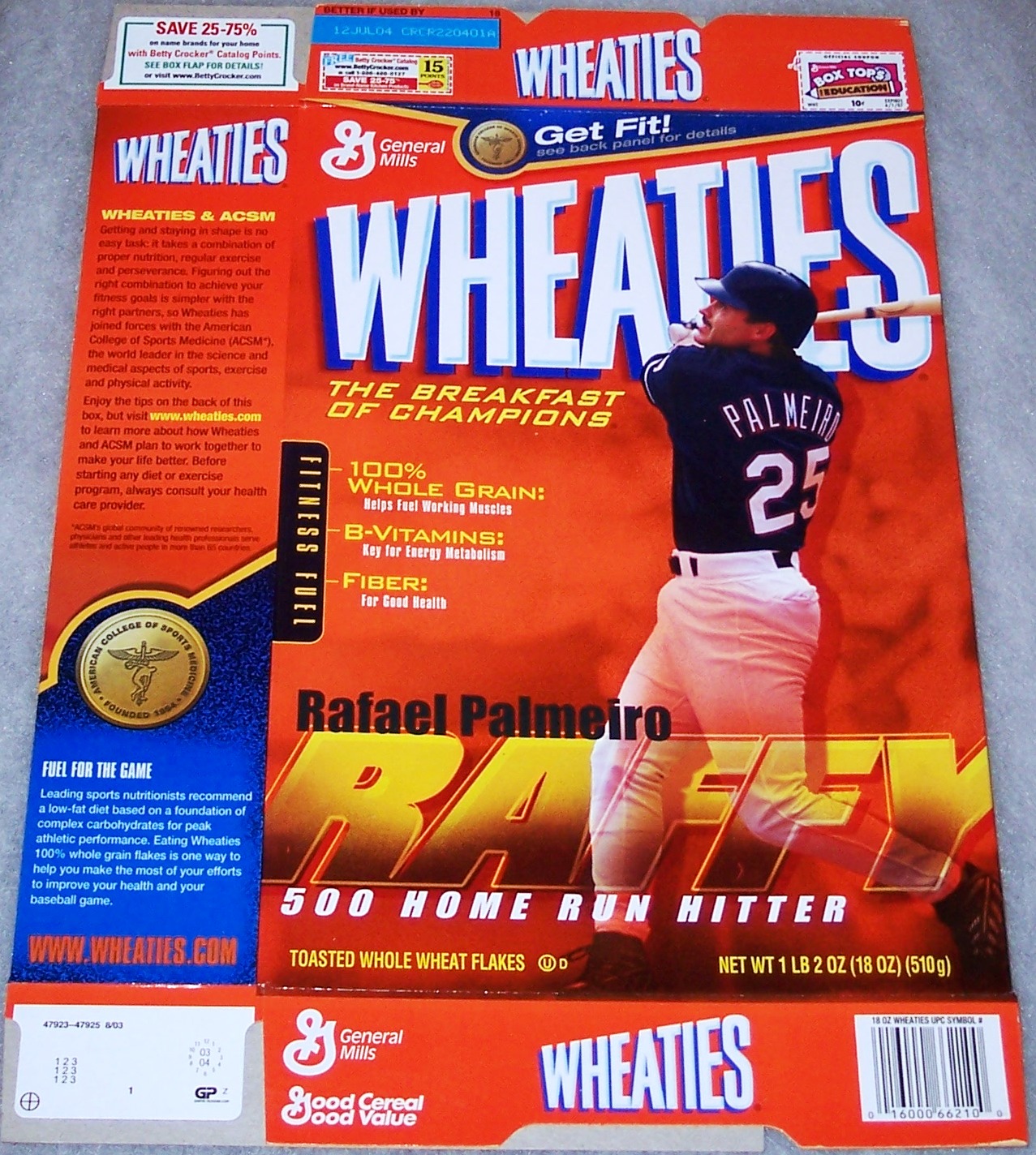 2003 Rafael Palmeiro 500 Home Run Hitter WHEATIES Box