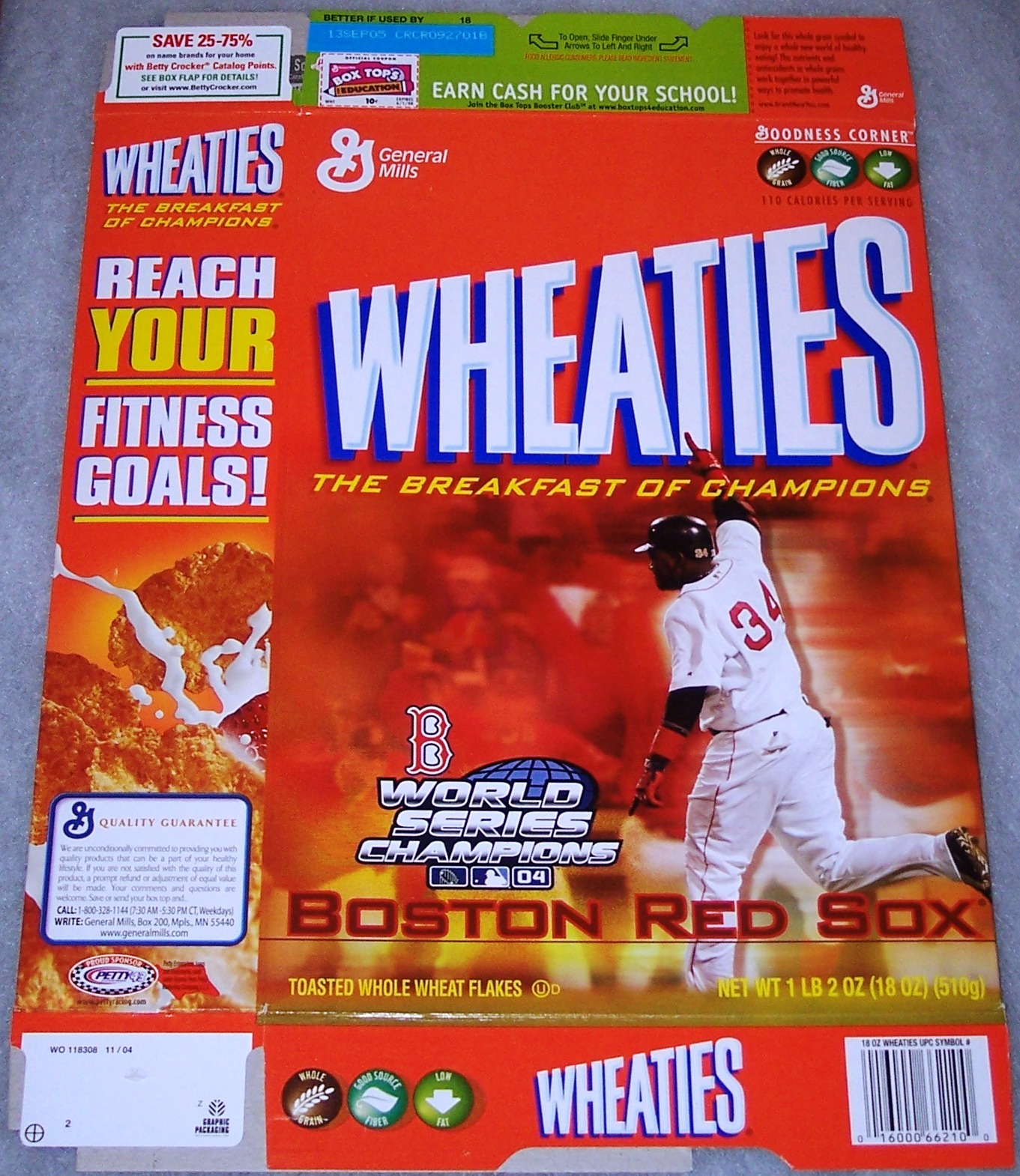 2004 Boston Red Sox World Series Champions ’04 (white general mills logo top left corner) WHEATIES Box
