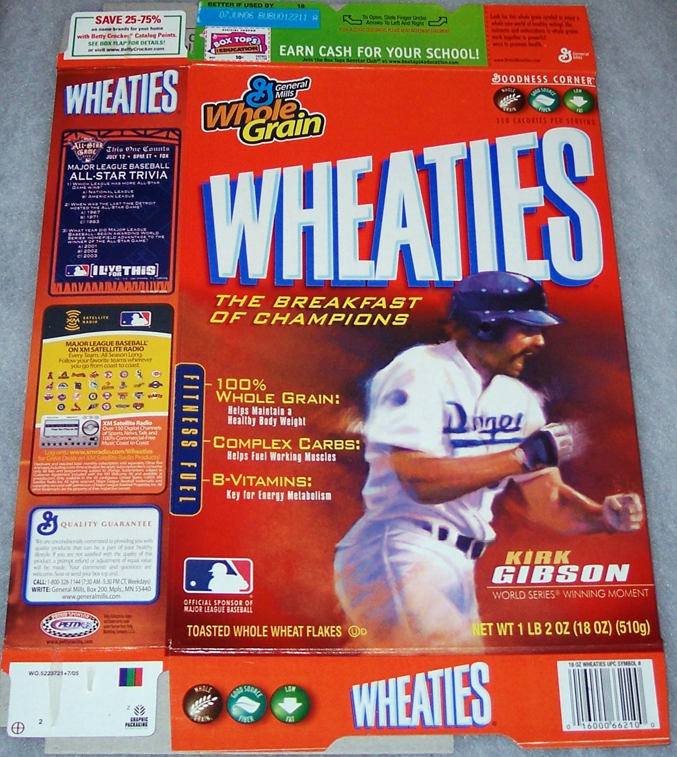 2005 Kirk Gibson World Series Winning Moment WHEATIES Box
