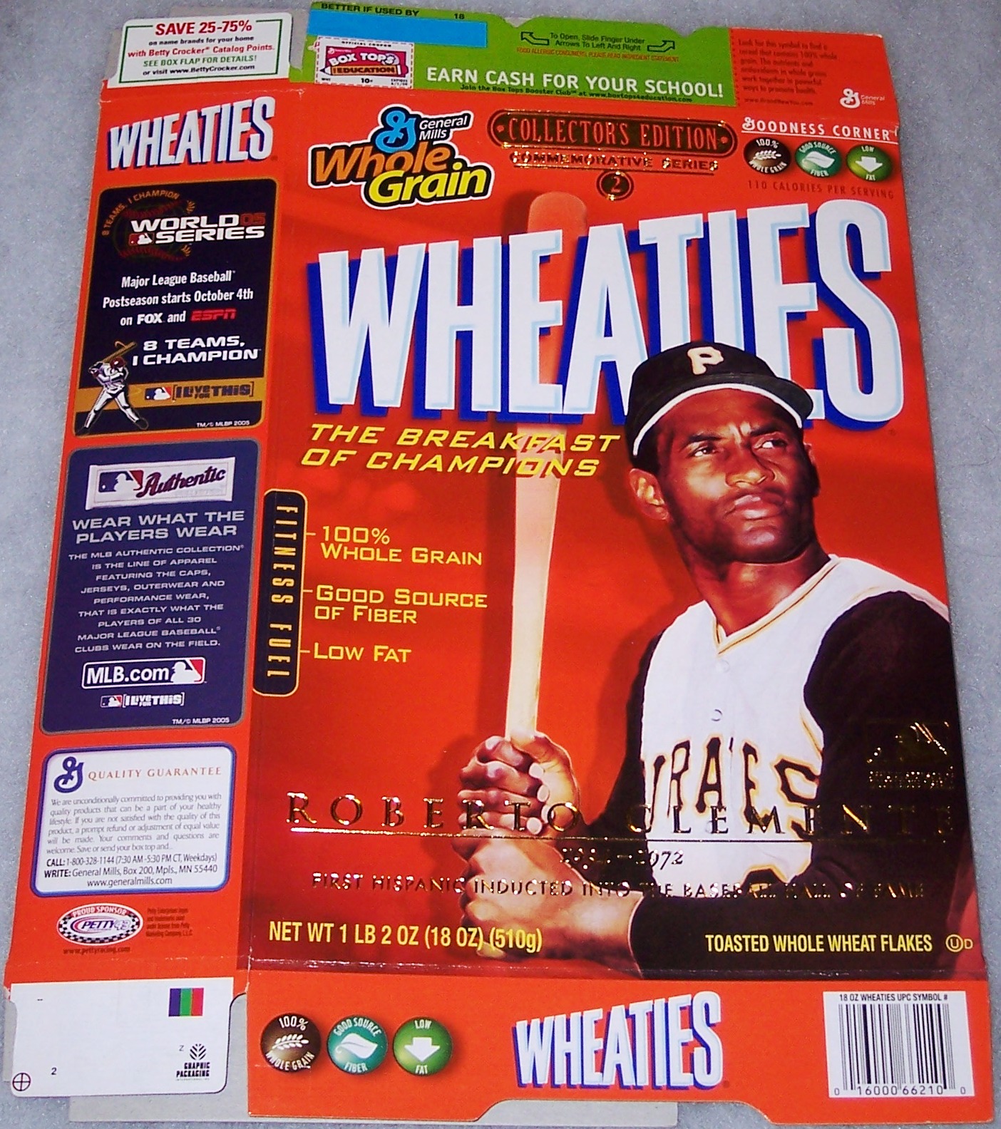 2005 Roberto Clemente 1934-1972 First Hispanic Inducted Into Baseball HOF Gold Collectors Edition Commemorative Series 2 WHEATIES Box