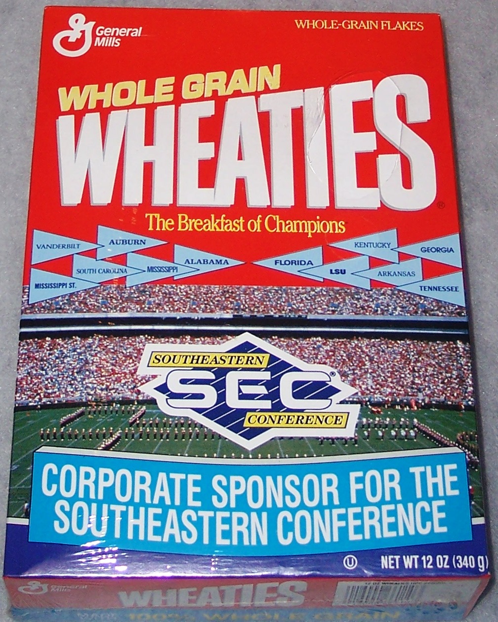 1991 SEC Southeastern Conference (Front Panel says “Corporate Sponsor For The Southeastern Conference”) (Back panel says “1991 SEC Football Fan’s Guide Free On This Box)