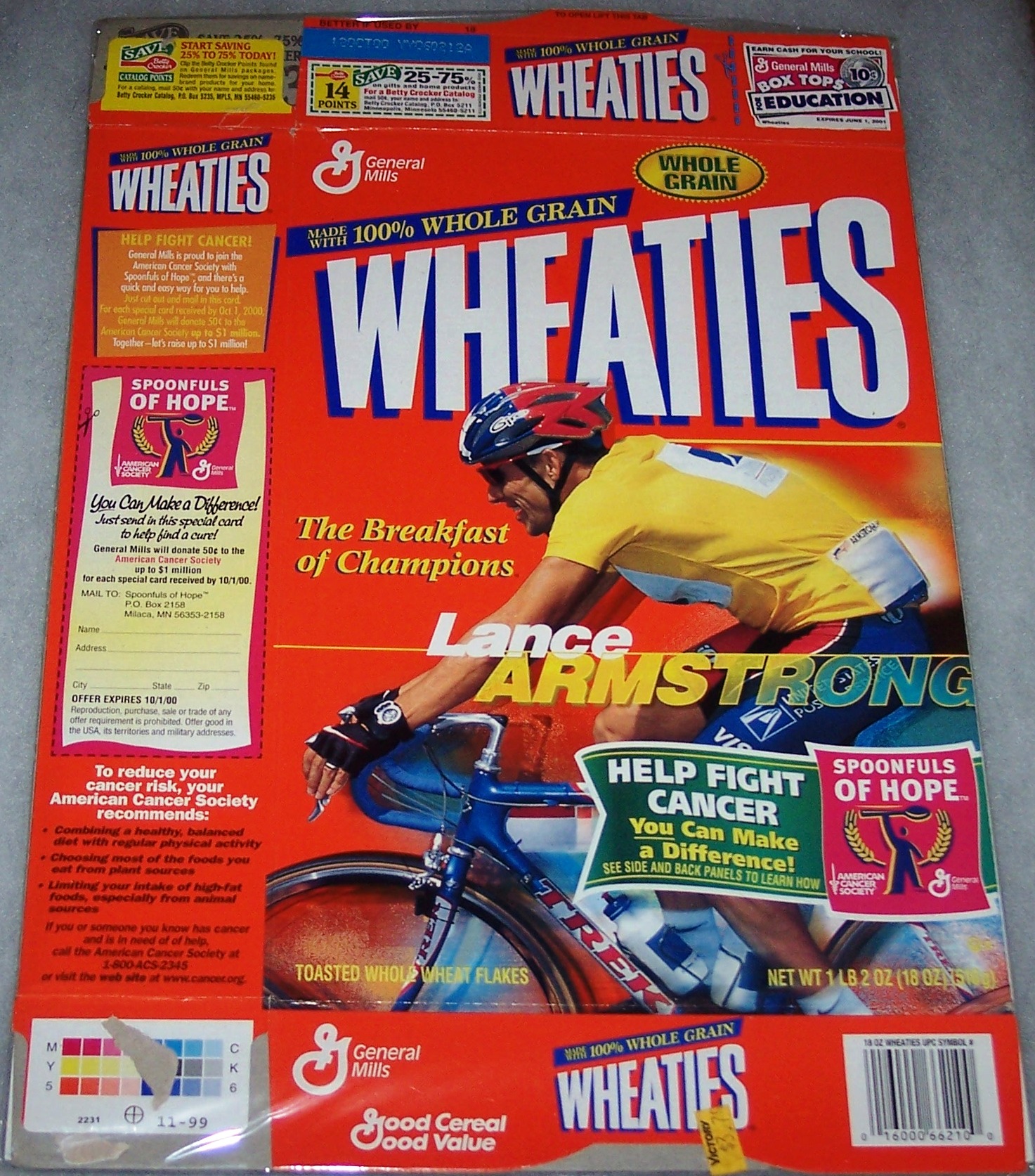 2000 Lance Armstrong (Spoonfuls Of Hope banner on front) WHEATIES Box