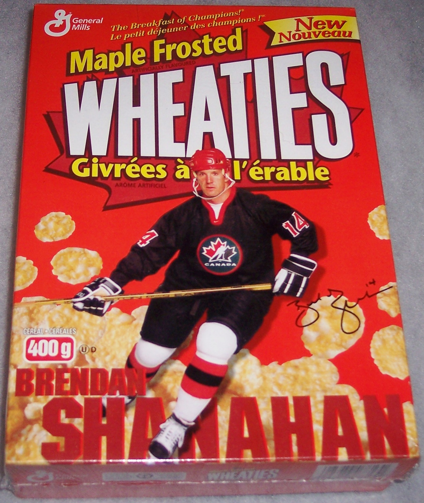 First is that Wheaties was pushing the new cereal flavor. The second is that Brendan Shanahan is Canadian. He was a member of the 1998 olympic team (finished 4th) and General Mills was highlighting Team Canada.
